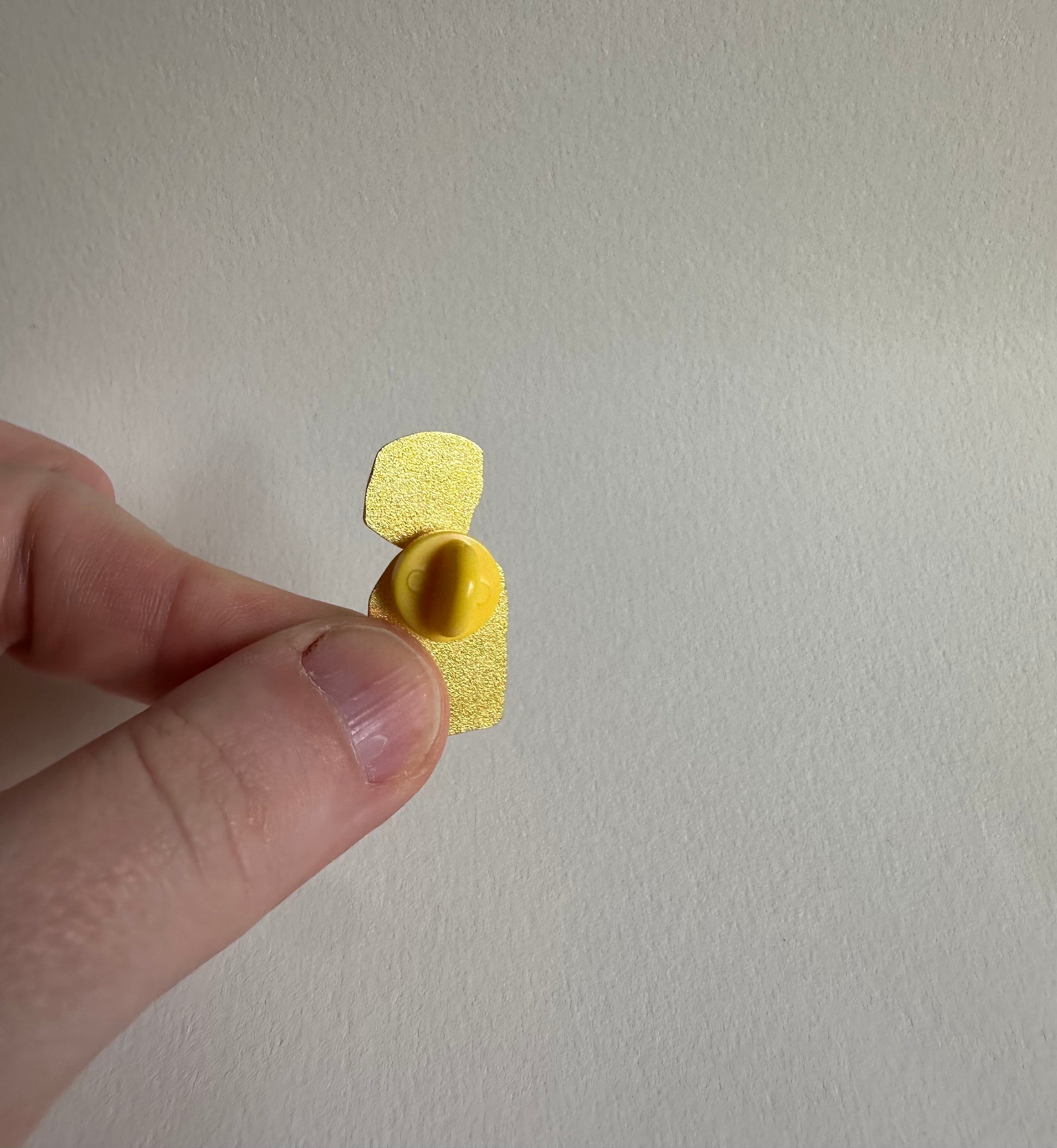• A cute, colorful addition to any jacket, backpack, or pin board