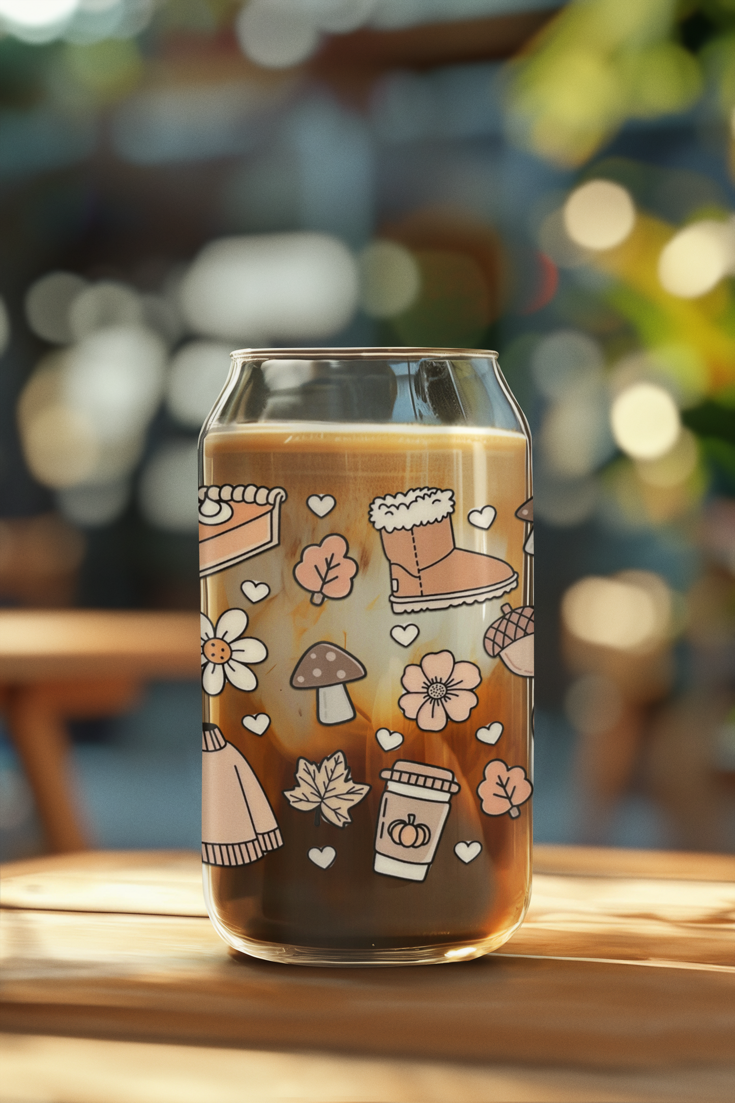 With its warm, soft-toned design featuring pumpkins, acorns, mushrooms, and fall florals, this glass is the perfect way to sip your favorite seasonal drinks in style. Whether you’re enjoying an iced coffee or pumpkin cream cold brew, it’s your must-have accessory for all things cozy.